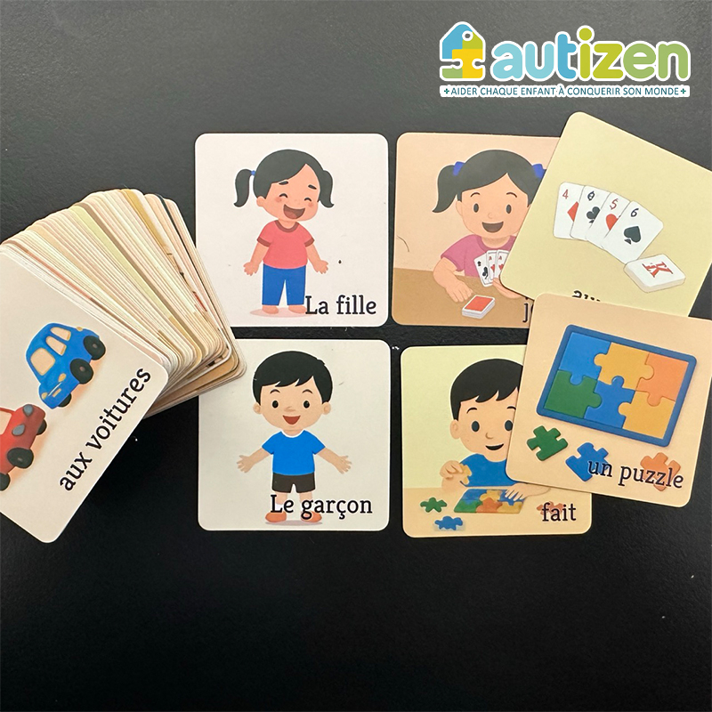 1. 🌱 Une Pédagogie Progressive par Scénarios : Chaque pack de 15 à 20 scènes de la vie courante constitue un univers complet. L'enfant apprend à construire des phrases, en commençant par l'expression simple.